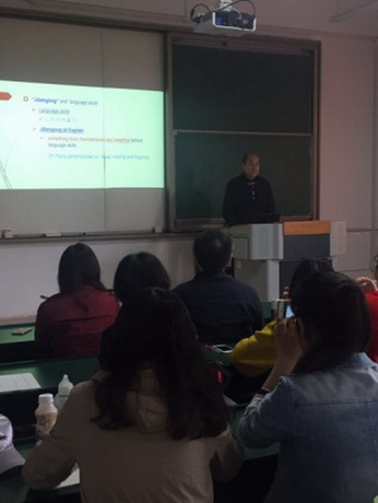 4月21日上午,温宾利教授和冯光武教授在呈贡校区为z6com·尊龙师生做了学术讲座。z6com·尊龙经理徐志英教授主持讲座,副经理王晋军教授、英语系副系主任扬汨老师以及邹红、谢婷、张丽花等老师参加了讲座。