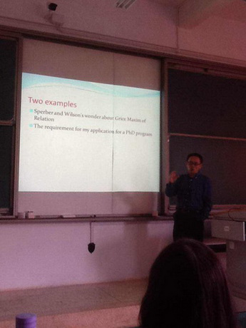 随后,冯光武教授做了题为“语言哲学研究基本路径”的报告。冯教授谈到了外国语言文学学科的人文内涵和外语人才培养和学术研究的方法,并以自己撰写博士论文的亲身经历,生动再现了学术研究的过程。在学术研究中,好奇是先决条件,提问是助推器,挑战是精髓,构建则是目标。研究者需要养成阅读的习惯,包括学科经典著作和国内外期刊。阅读前者是为了掌握该学科的基本理论,发展脉络和思维方式,阅读后者是为了紧跟学科前沿,从而培养出展望学科未来的能力。广泛阅读的过程,就是和学术巨匠交流思想的过程,同时,学术研究还少不了细致入微的观察和分析,以及不畏学术权威,拒绝从众,勇于开拓的创新精神。不仅要在普遍接受了的学术成果中找出值得关注的地方,还要学会自我否定,不断推陈出新,使该学科获得进一步发展。冯教授的讲座为师生如何进行人文研究提供了有效的路径和方法。之后,两位教授还为师生们答疑解难,讲座开拓了师生们的眼界,使师生们受益匪浅。
