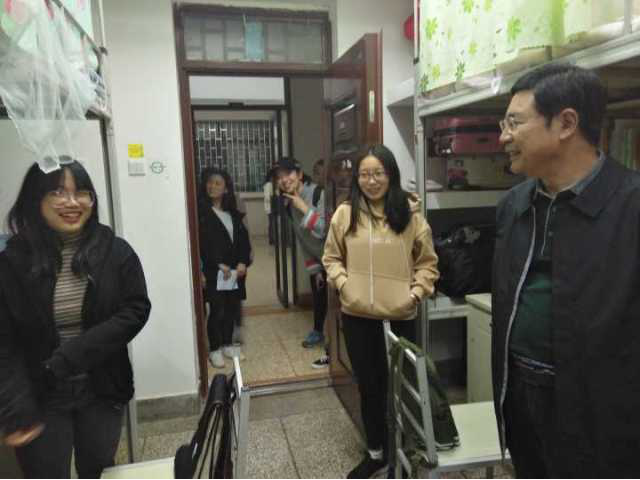 在查寝同学及王佳辅导员的陪同下,彭荣书记先后走访了外院女生及男生宿舍。面对刚返校的同学,彭荣书记及王佳辅导员关切询问了同学们的假期体验及新学期打算等,彭书记特别告诫同学们要用钱有度,坚决拒绝网贷现象的发生;也要学会屏蔽微信朋友圈中的“无用鸡汤”,要脚踏实地搞学习。