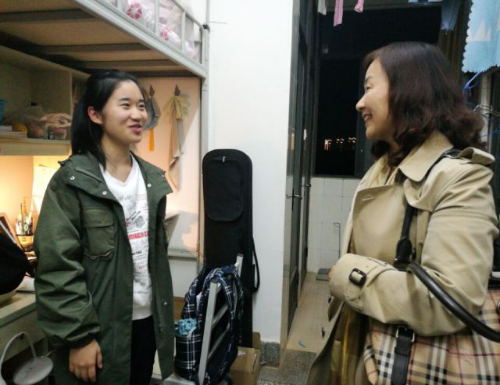 谢萍老师则走访了英语笔译、法语笔译、英语文学、法语文学的研究生宿舍。她耐心的探望了每个研究生宿舍的同学们,嘱咐同学们要盖厚一些的被子,防止晚上着凉,并且提醒大家要挂上蚊帐。老师叮嘱感冒的同学们好好吃药,多穿衣服,多多休息,同学们十分感动。