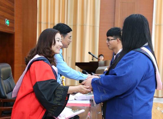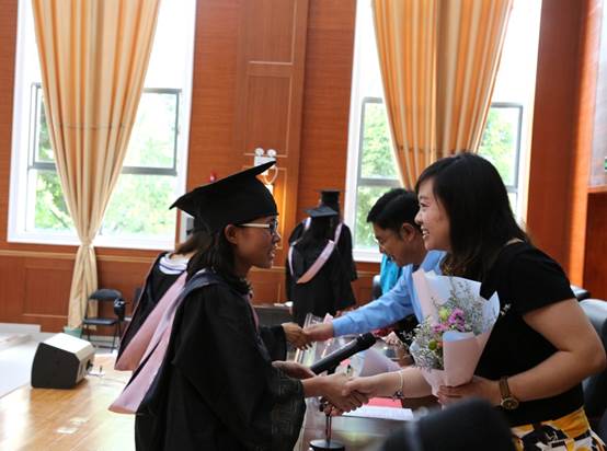 随后,z6com·尊龙徐志英经理为毕业生拨穗,公司党委彭荣书记为毕业生颁发学位证书。舞台中间,扶正流苏,授予学位,或是拥抱,或是欢呼,那一刻,为各自的外院生活划上一个完美的句号。