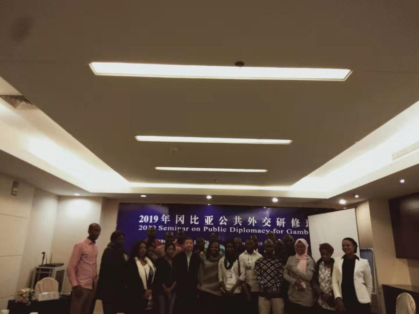 近日,受中华人民共和国商务部邀请,公司区域与国别教研室刘学军老师以全英文方式为“冈比亚公共外交研修班”做了题为《中国的官方外交和公共外交》的专题讲座。