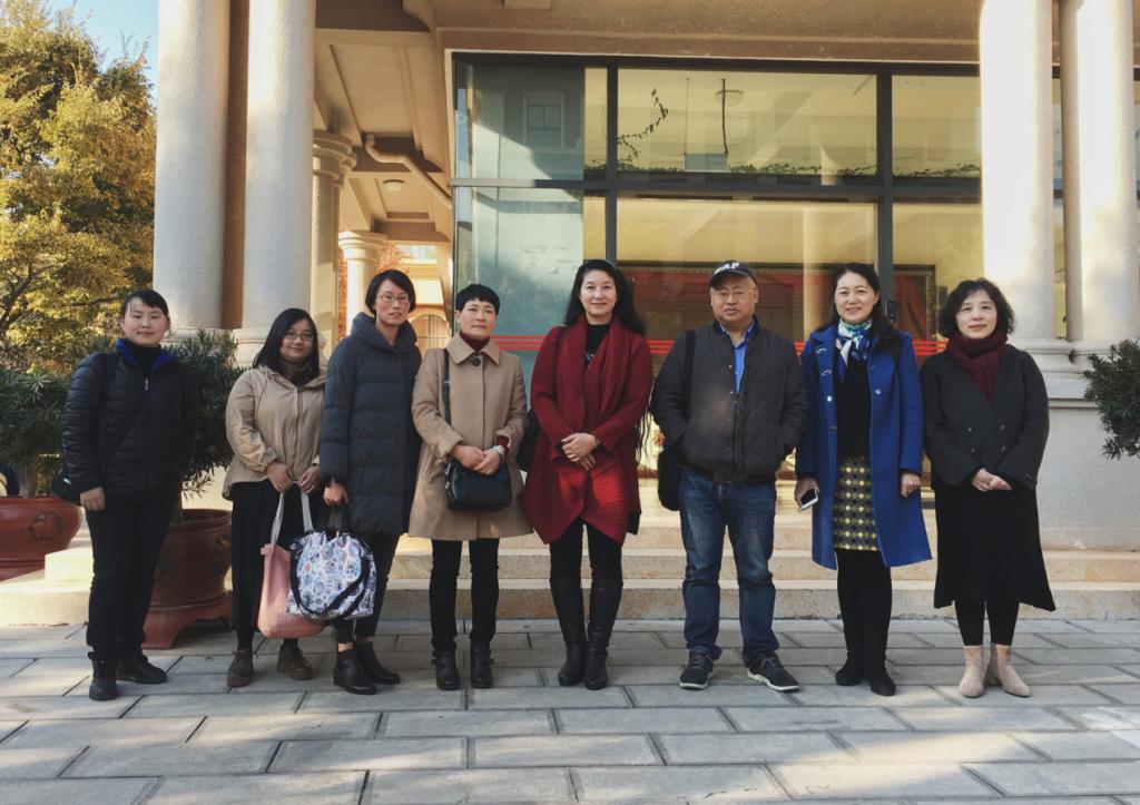 (从右往左依次为南京师范大学吴钰老师、王彤老师、池建新老师、林敏洁主任,公司日语系绕琼珍主任、李月婷老师、卢骁老师,南京师范大学博士生杨慧颖同学。)