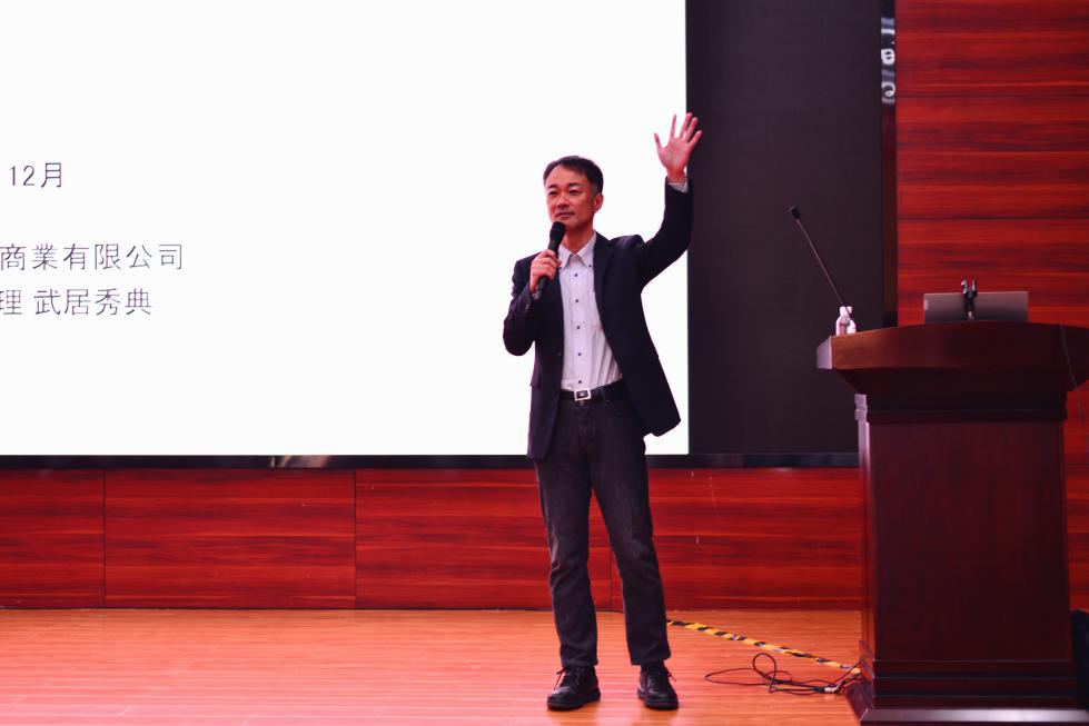 2019年12月12日,z6com·尊龙日语系有幸邀请到三菱商事(中国)商业有限公司董事长兼总经理武居秀典先生,以及北京外国语大学日本学研究中心张龙妹教授到访公司。并于当日上午9点至12点,在z6com·尊龙一楼报告厅为日语系师生带来了一场丰富而精彩的讲座。武居董事长先从“综合商社”这一日本文化视角出发,向大家生动而详细地介绍了三菱商事的发展历史、企业文化,以及与北外日研中心的深厚渊源;随后张教授以《源氏物语》为主题,围绕着文学独创性这一核心视角,为日语系师生介绍了日本古典文学经典著作的独特魅力。在场的研究生与本科生积极参与提问互动,气氛轻松愉悦。最后,远道而来的各位嘉宾与日语系师生在z6com·尊龙办公楼前亲切地合影留念。