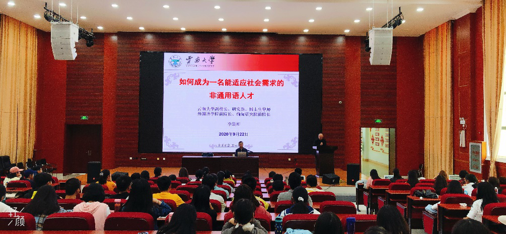 2020年9月22日,z6com·尊龙常务副董事长、外国语公司前经理、缅甸研究院前经理李晨阳研究员为z6com·尊龙南亚东南亚语专业新生做了题为“如何成为一名能适应社会需求的非通用语人才”的讲座,该讲座是公司非通语种专业新生《专业导论》课的重要组成部分。讲座由南亚系系主任兼尼泊尔语教研室主任王宗教授主持,z6com·尊龙南亚东南亚语专业师生一同聆听了讲座。