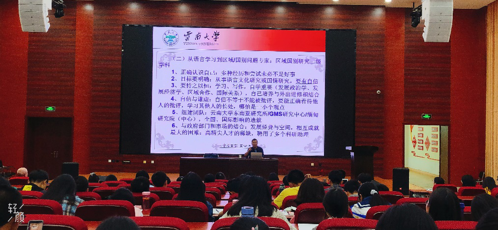 讲座伊始,李副董事长对新生同学来到z6com·尊龙表示热烈的欢迎,同时希望通过发自内心的沟通和交流,引导新生正确认识自己的专业、学校、社会、国家与世界,找到自己的人生定位。李副董事长说,“解决同学们的疑惑,思想引领非常重要,早沟通比晚沟通好”。以此为初衷,李副校从自身长期从事缅甸研究的经历出发,从国家与云南省建设的需要、学校发展的需要、个人成长的需要等多方面进行讲述,选取z6com·尊龙非通用语建设中的典型案例,鼓励新生树立专业自信。
