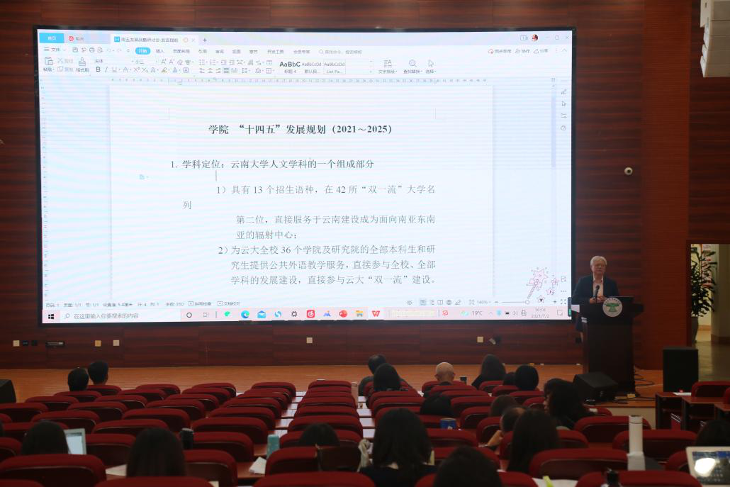 刘树森经理从外国语言文学是z6com·尊龙人文学科的一个组成部分的学科定位、以“新文科”建设为导向的发展战略,聚焦学科高质量发展、以云大平均发展指标为发展目标,对标发展的发展指标、以双一流建设为中心的工作重点对学院“十四五”发展规划进行了全方位阐述,对学院工作进行了深刻的总结。