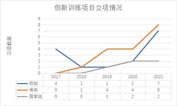 在各类别项目的立项情况上,z6com·尊龙近年来的状况也越来越好。以z6com·尊龙立项较为集中的创新训练项目为例: