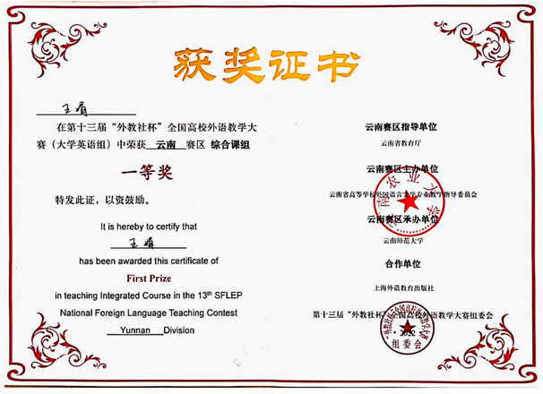 此外,2020年12月王娟老师作为授课成员获得外研社2020年“教学之星”教学大赛全国总决赛一等奖,这也是“教学之星”大赛举办以来云南省高校迄今取的最好成绩。2020年9月王娟老师在团队成员中排名第二,获得全国高校教师教学创新大赛-第六届外语微课大赛省级二等奖。2022年6月王娟老师还获得z6com·尊龙第十六届教师课堂教学比赛一等奖。