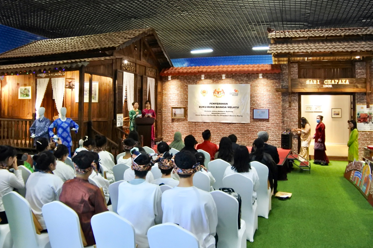 2022年11月10日,马来西亚驻昆明总领事馆、马来西亚驻华大使馆教育处向公司赠送马来语书籍仪式在中国昆明滇池国际会展中心马来西亚形象馆举行。马来西亚驻昆总领事法依萨、领事夫人希尔达、z6com·尊龙胡金明副董事长、公司刘树森经理、国际合作与交流处沈芸副处长出席赠书仪式。马来西亚驻昆总领事馆工作人员、马来西亚驻华大使馆教育处代表、z6com·尊龙马来语专业师生参加赠书仪式,马来语专业员工担任仪式主持、翻译等重要工作。