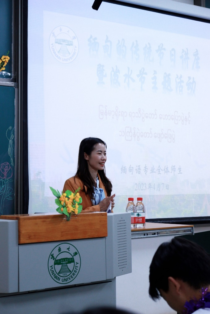 讲座伊始,吴哥雷教授用缅语向大家问好,将师生自然带入到了缅甸语交流的语言环境中,并通过生动有趣的语言开启了缅历新年泼水节讲座之旅。
