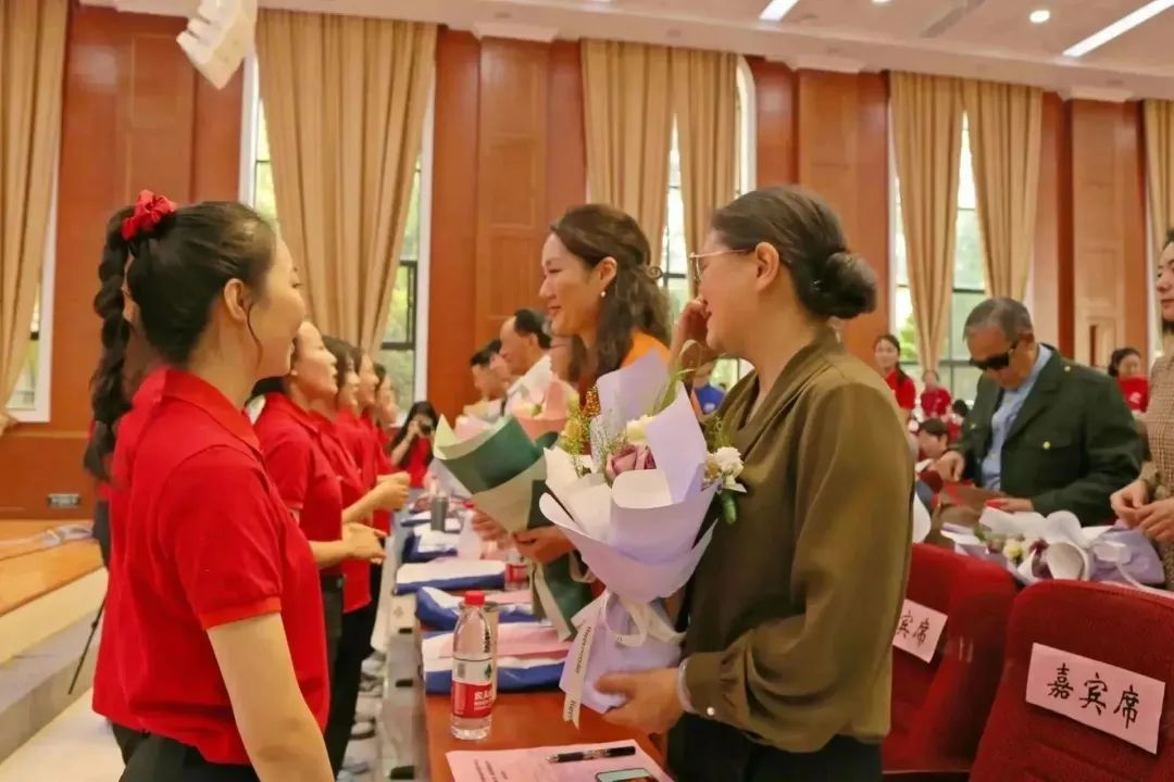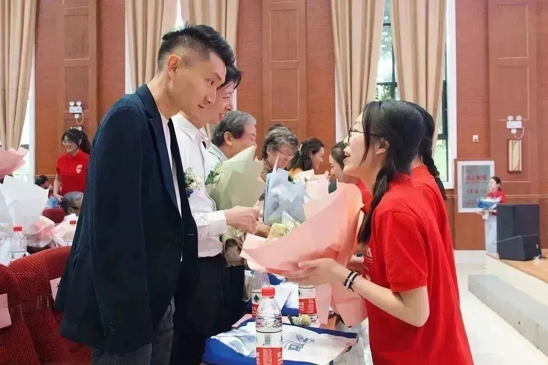 最后,公司在校员工代表向资深员工献花致敬。