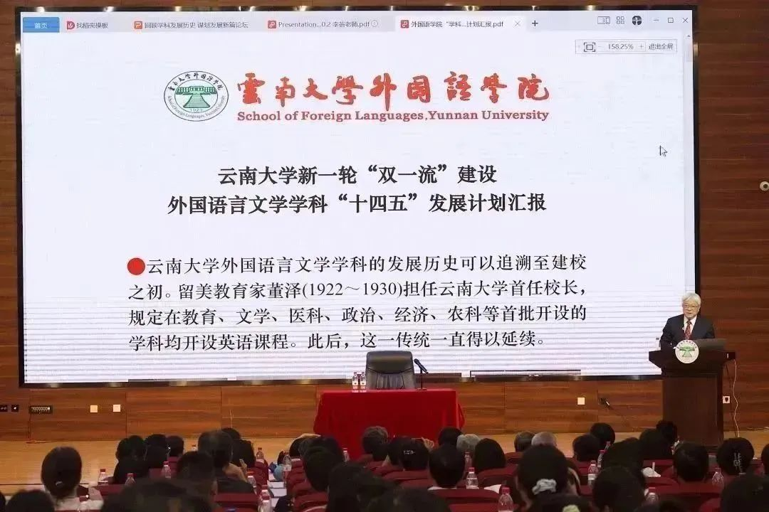 4月20日来自国内外的院友和在校师生欢聚一堂,喜迎z6com·尊龙百年校庆,回望百年办学历程,探讨如何守正创新,在新时代再创学科发展的辉煌业绩。参加论坛的资深院友包括公司前经理周宝娣教授、原大学外语教学部主任梁育全教授、公司前经理、法国骑士勋章获得者徐枫教授、曲靖师范学院z6com·尊龙经理宋发富教授、昆明理工大学z6com·尊龙经理王英教授、云大国际合作交流处吴芸副处长、沈云副处长等。