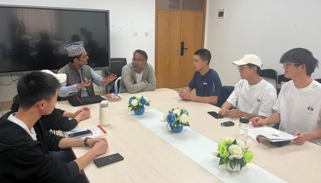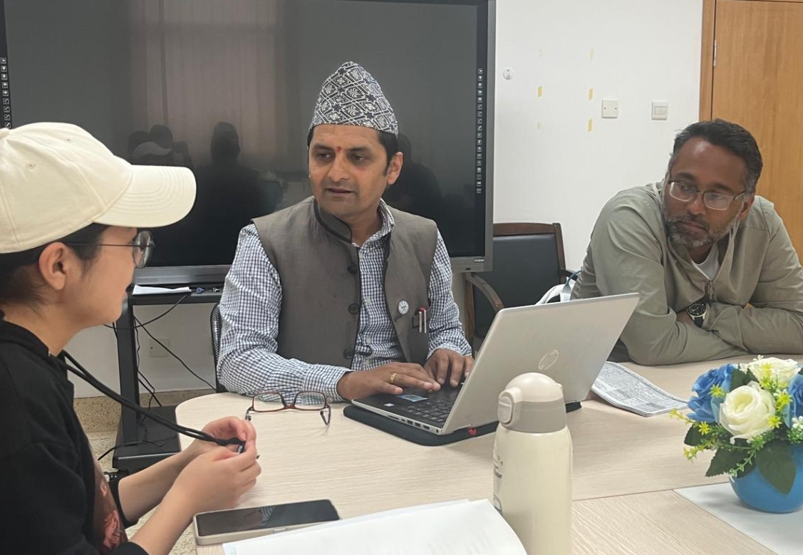 外教Bharat Sharma与尼泊尔语专业员工交谈