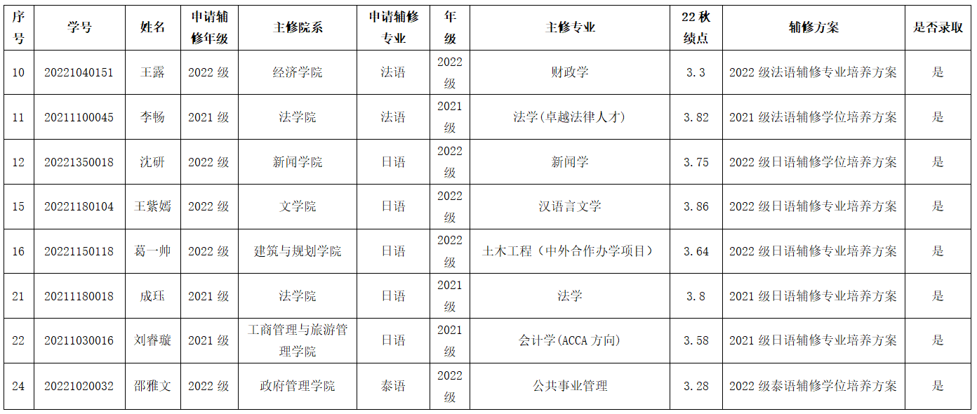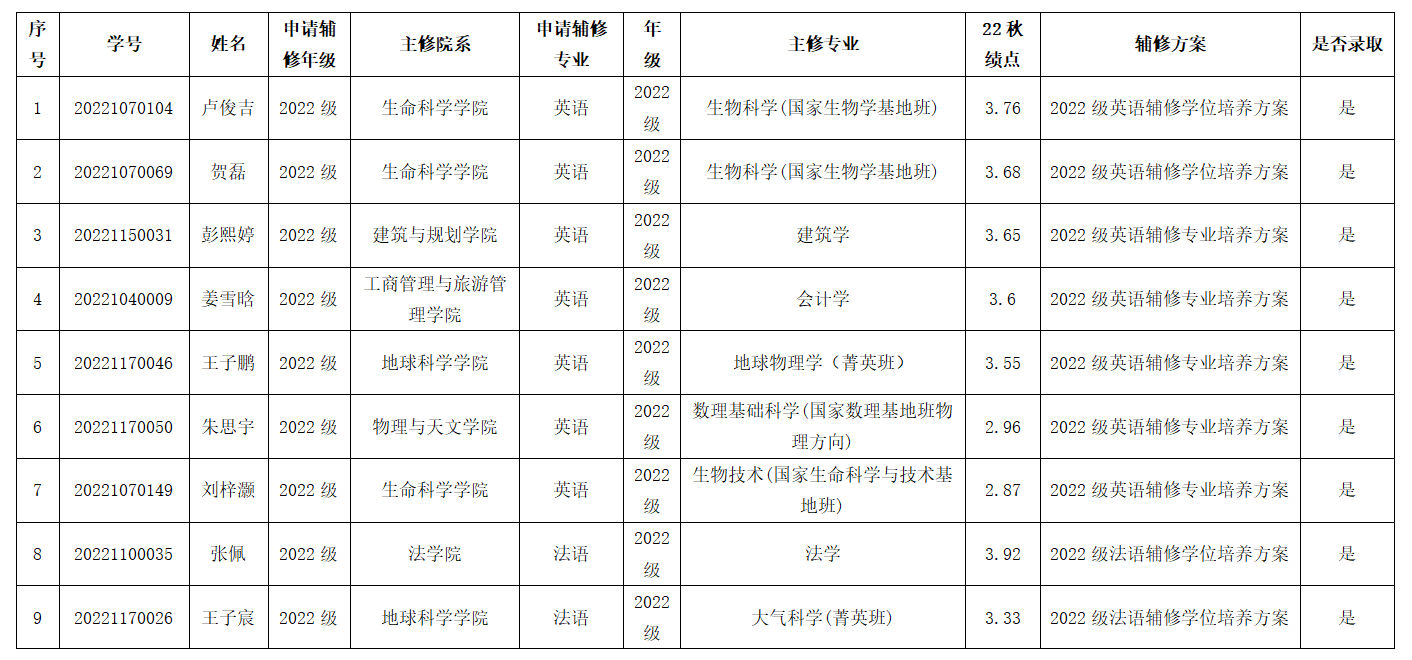 根据学校《关于做好2023年春季学期辅修申请工作的通知》相关规定,现将拟接收辅修的员工名单进行公示,详情如下: