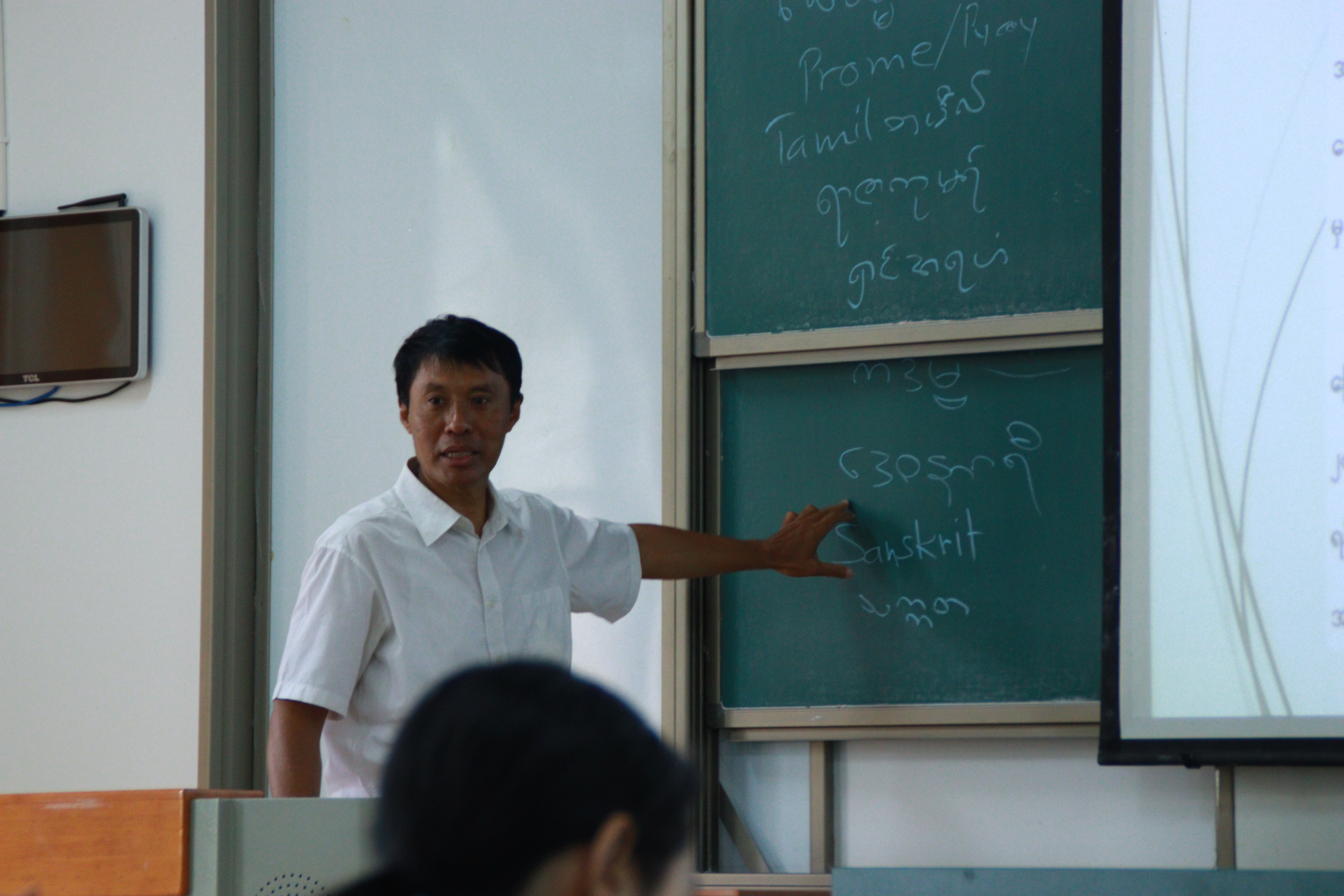 图三 吴哥雷教授讲解缅甸文字