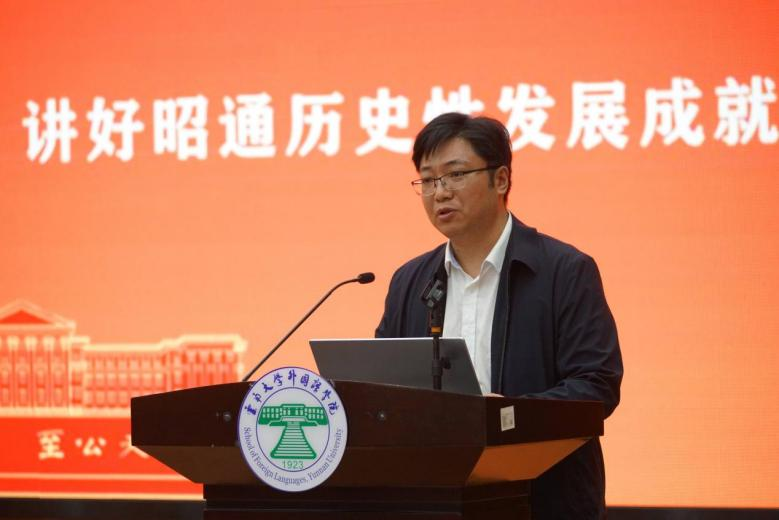 公司党委书记王益广老师为会议致辞。王书记首先就师生观察团亲赴昭通实地考察的意义进行了概括性总结,并对本次调研活动的开展表示了肯定与赞扬。王书记强调,我们每一个调研活动的开展都要聚焦党的十八大以来党和国家取得的历史成就以及历史性变革。本次调研活动的开展就是以中国大地为课堂、以脱贫攻坚历史性成就为现实教材、面向南亚东南亚讲好云南发展故事的一次很好的实践。随后,王书记讲述了自己参与社会实践的亲身经历,让大家感受到了社会实践活动的意义。