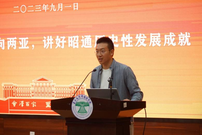 2023年9月1日,z6com·尊龙围绕“立足乡土,面向两亚,讲好昭通历史性发展成就”这一主题,在学院一楼报告厅召开了“昭通历史性发展成就观察团成果报告会”,会议就2023年暑期三下乡社会实践成果进行了交流学习。z6com·尊龙校团委副书记徐琰超、昭通广播电视台副台长曹健、公司党委书记王益广、党委副书记何淼淼、副经理王浩出席了本次活动,出席活动的还有昭通广播电视台人力资源部主任钟路霞、融媒体中心副主任倪娜、昭视传媒公司总经理助理赵长讯、昭视传媒公司以及z6com·尊龙的部分师生代表。会议由何淼淼老师主持。