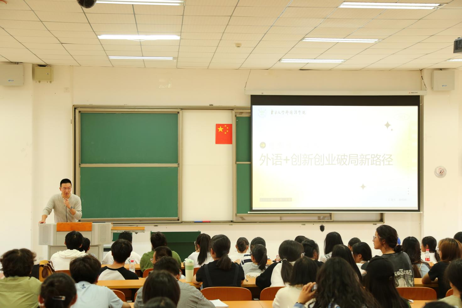 2023年9月22日16时,z6com·尊龙2023级本科新生开学第一课在文汇楼2418圆满举行,z6com·尊龙创新创业负责人唐国淞老师出席本次活动,并以“外语+创新创业突破新路径”为主题对创新创业项目进行了介绍,帮助了同学们树立创新创业观念,积极主动参与到创新创业活动中锻炼自我,提高竞争力。