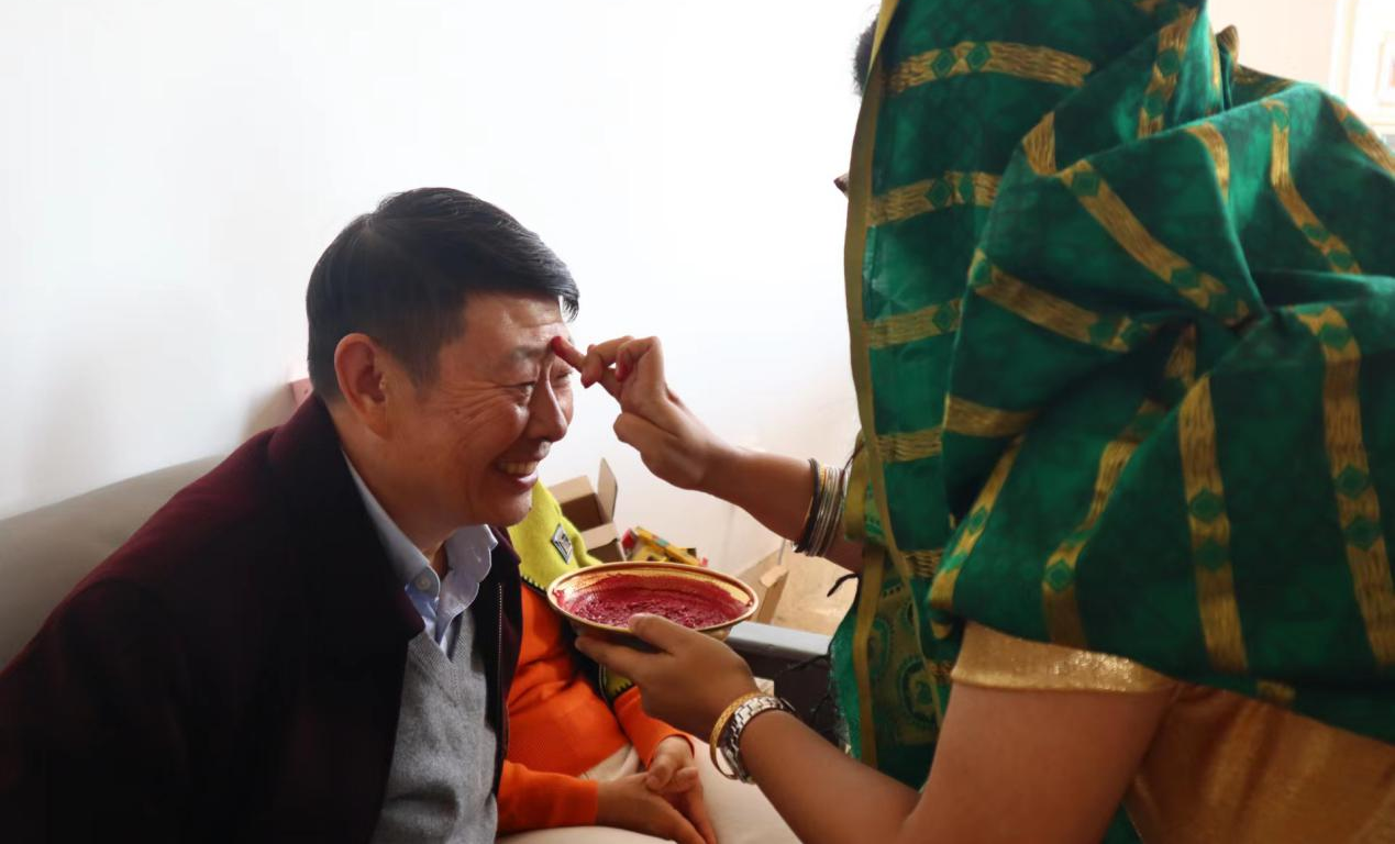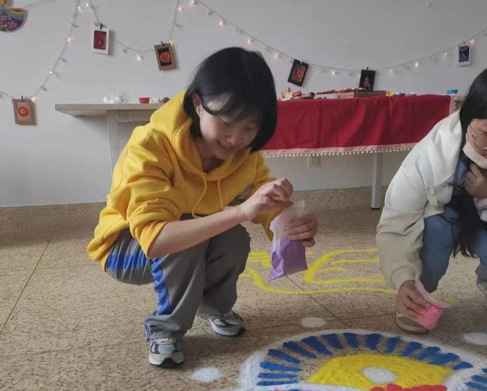 外教Malavika Chakrabarty给全体师生点完“吉祥痣”及邓兵教授带领大家完成点灯仪式后同学们期待已久的“排灯节”活动正式开始。