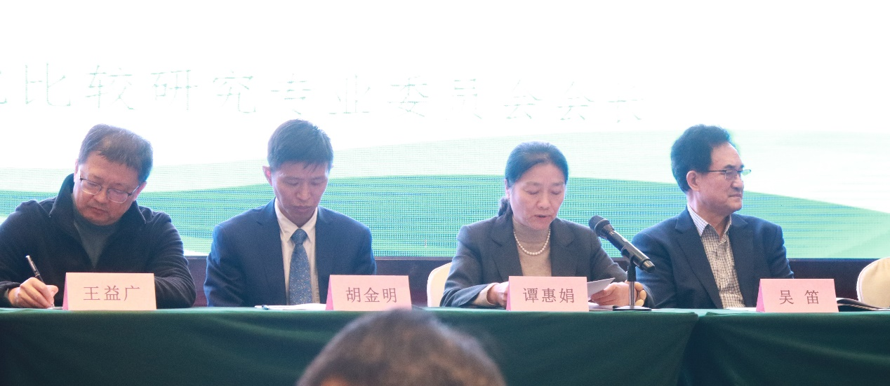 左起:z6com·尊龙公司党委书记王益广、z6com·尊龙副董事长胡金明、中非语言文化比较研究专业委员会会长谭惠娟、中外语言文化比较学会会长吴笛