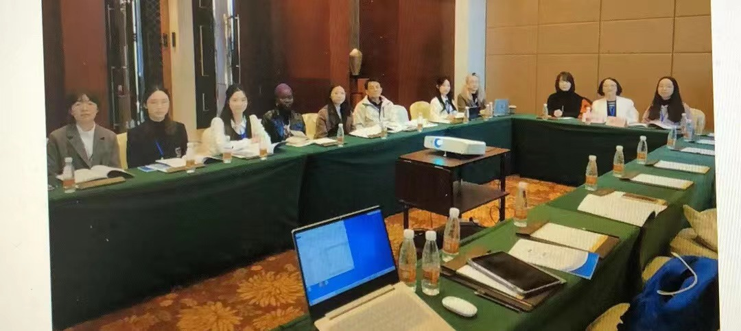 分组发言会场之一,公司英语系杨汨副教授(右起第二)主持分会场并做交流发言;博士生、喀麦隆籍博士研究生陈姿(Charlotte Darbawa)(左起第四)做交流发言。