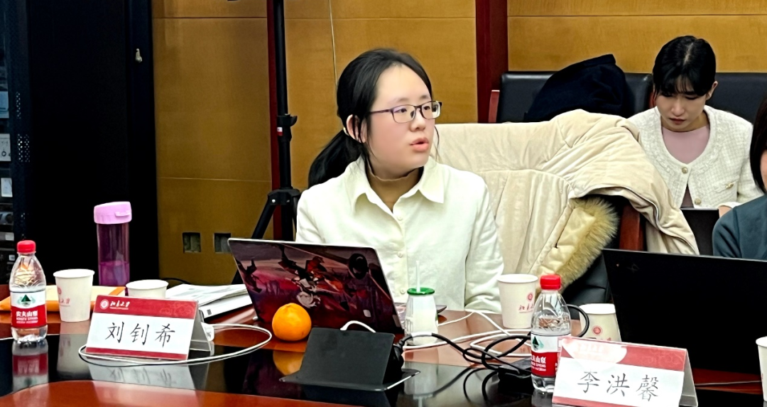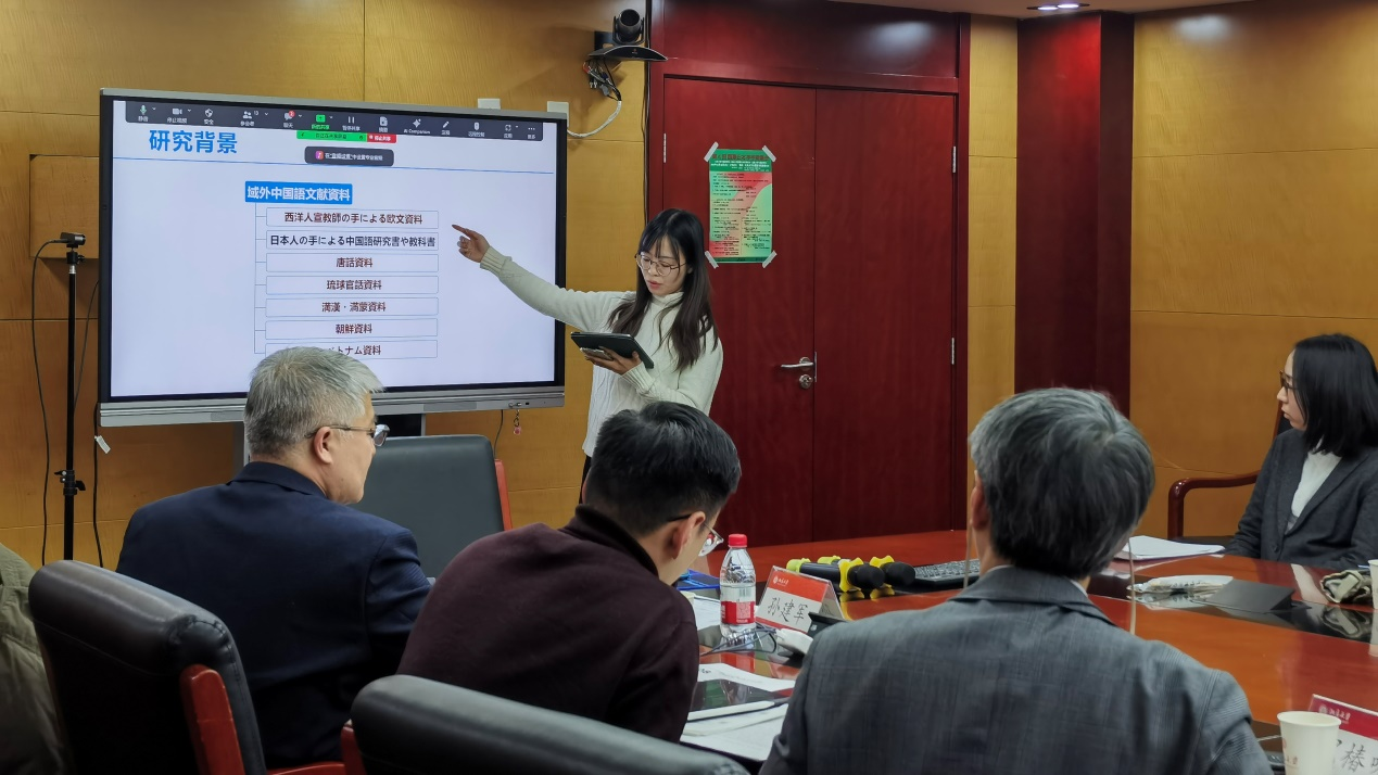 在员工报告环节,语言学方面,明治大学星川睦同学以“‘不安'的近现代语义变化(近現代における「不安」の意味変化)”为题,从日本社会媒体的发展和与“幸福”的对义关系的角度,考察了近现代“不安”一词从“对危险本身的不快感”到“对自己无法把控的未来的不快感”这一含义变化。北京大学李洪馨同学在以“日语程度副词‘ちょっと'和形容词的共现机制考察——从形容词的等级性出发 (形容詞のスケール性から見る日本語程度副詞「ちょっと」と形容詞の共起関係)”为题的报告中,采用程度语义学理论,探究了日语程度副词“ちょっと”和形容词搭配限制的底层因素。