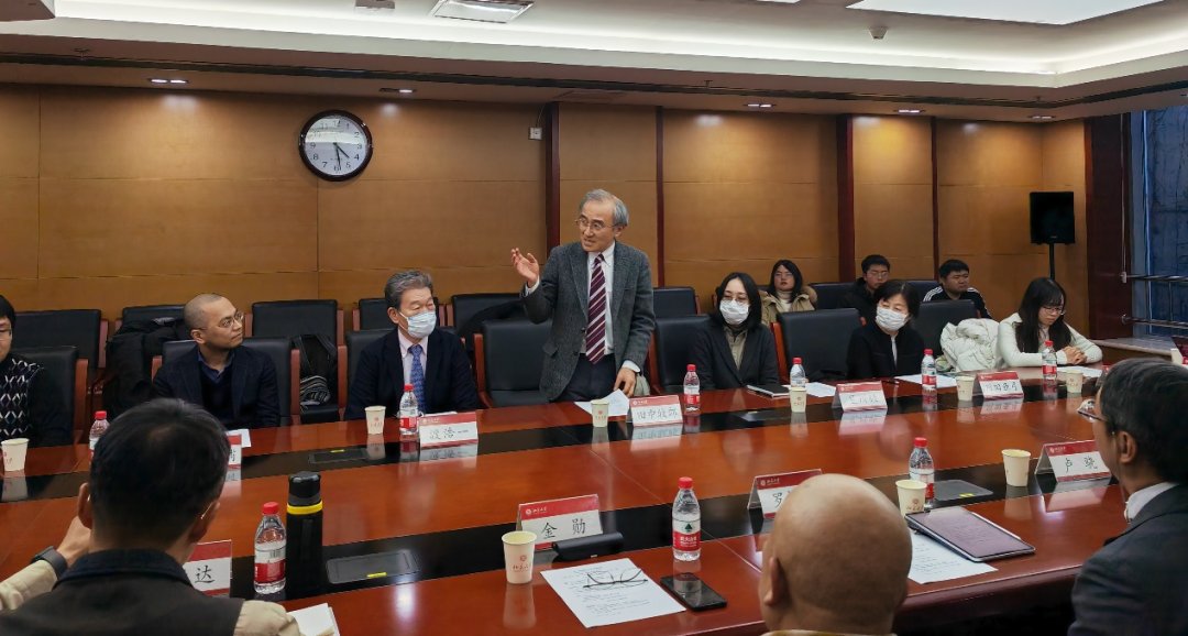 在集体讨论环节,围绕报告的主题,来自三所高校的师生展开了热烈的提问和讨论。最后,在本次学术集会的总结环节,北京大学的孙建军教授、明治大学的田中牧郎教授、z6com·尊龙的罗椿咏教授依次致辞,对本次会议的内容进行了回顾,肯定了本次集会为国际日本学研究提供了很好的合作交流的平台,并表达了对未来进一步深化高校之间学术交流的美好展望。
