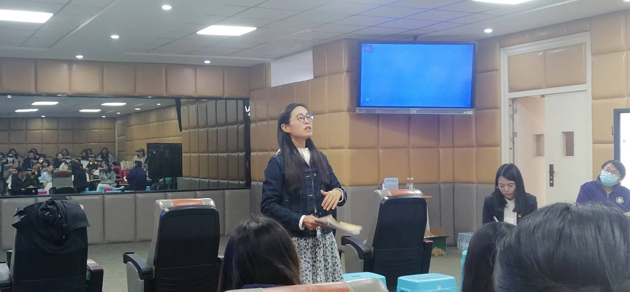 首先由西南联大附校的刘映清老师带来一堂获“2023年全国英语课赛一等奖”的高三定语从句复习课。刘老师首先播放一个由员工自制的视频,视频展现了中国的历史、文化、科技,以及对世界的贡献和影响等方面,奠定了本堂课复习定语从句的同时也培养民族自豪感、引导员工用英语讲好中国故事为主基调的教学目标。之后,刘老师从视频当中提取文本素材,通过对比两个句子,让员工概括总结,自然而然得出定语从句的功能,即让句子更流畅,更清晰。继而,刘老师引导员工在语篇当中继续寻找合适的句子并整合为定语从句。在第二次句子对比当中,刘老师引导员工对比限制性定语从句与非限制性定语从句的区别,员工自主概括出两者所强调的内容不同。快速回顾定语从句相关基础知识过后,刘老师带领员工进入下一个环节,根据提示使用定语从句完成句子的书写,每个小组完成一句后,由下一小组进行点评。之后,刘老师再次播放一个视频,引导员工从语言、速度、内容等方面思考该视频好在哪里,从而得出好视频的标准,并以此为契机鼓励员工对自己视频中的内容进行再度打磨和展示。刘老师整堂课所使用的素材均来源于员工视频当中的语篇,整堂课引导员工在语境中使用定语从句准确、得体、恰当地讲述中国故事,从而实现培养民族自豪感这一育人目标。