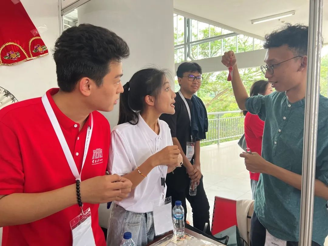 在活动开幕式上,谢欣彤同学与各青年代表团同学协作表演了声乐联唱、器乐合奏、舞蹈串烧等节目。在学术论坛上,谢欣彤同学还以“非艺术专业的同学如何传承和保护传统文化艺术”为题进行了互动交流。在艺术与文化集市中的中国展台,谢欣彤同学向国外青年展示了z6com·尊龙书签、明信片、纪念币、云大剪纸画等百年校庆系列文创产品。