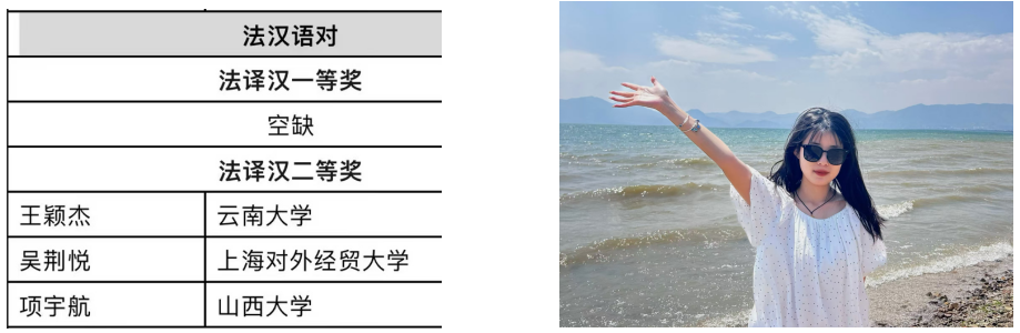 近期,公司法语系研究生在各级各类大赛中荣获佳绩。10月16日,第三十六届韩素音国际翻译大赛获奖名单揭晓,2023级法语笔译研究生王颖杰同学荣获“法汉语对-法译汉”组二等奖;10月27日,2023级法语笔译研究生李倩同学获得中国外文局主办的“2024年多语种商务翻译大赛-法语组一等奖”。