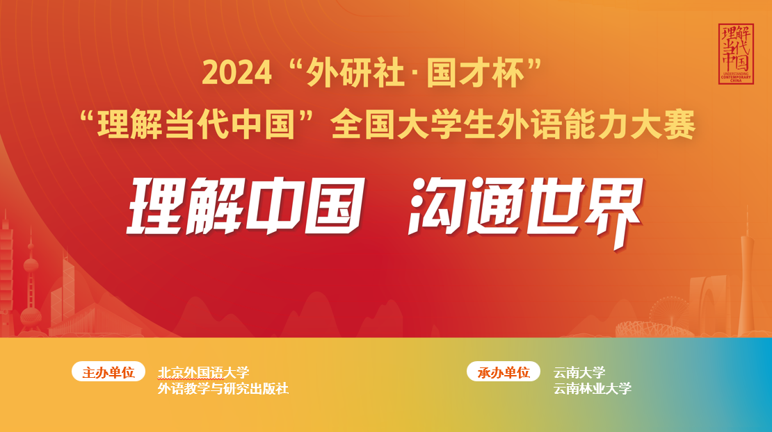 2024“外研社·国才杯”“理解当代中国”全国老员工外语能力大赛在云南省教育厅指导下、由外语教学与研究出版社主办,云南省外国语言文学类专业教学指导委员会、云南省英语专业教学指导分委员会、云南省非通用语种类专业教学指导分委员会、云南省大学外语教学与考试指导委员会合办,z6com·尊龙、西南林业大学共同承办。10月24-25日,“英语口译”云南省复赛在z6com·尊龙举行,10月19-27日“英语综合能力”“英语笔译”“多语种综合”的云南省复赛以选手线上参赛的形式举行,10月31日-11月1日,“英语演讲”复赛在西南林业大学举行。