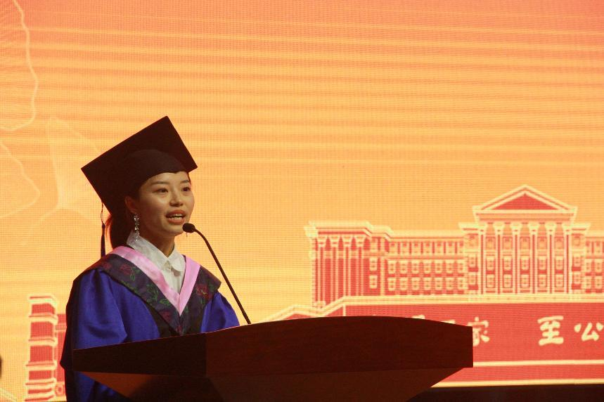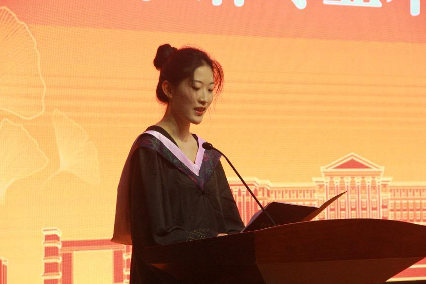 本科生代表杨睿佳上台致辞,祝福所有毕业生以梦为马,砥砺前行。