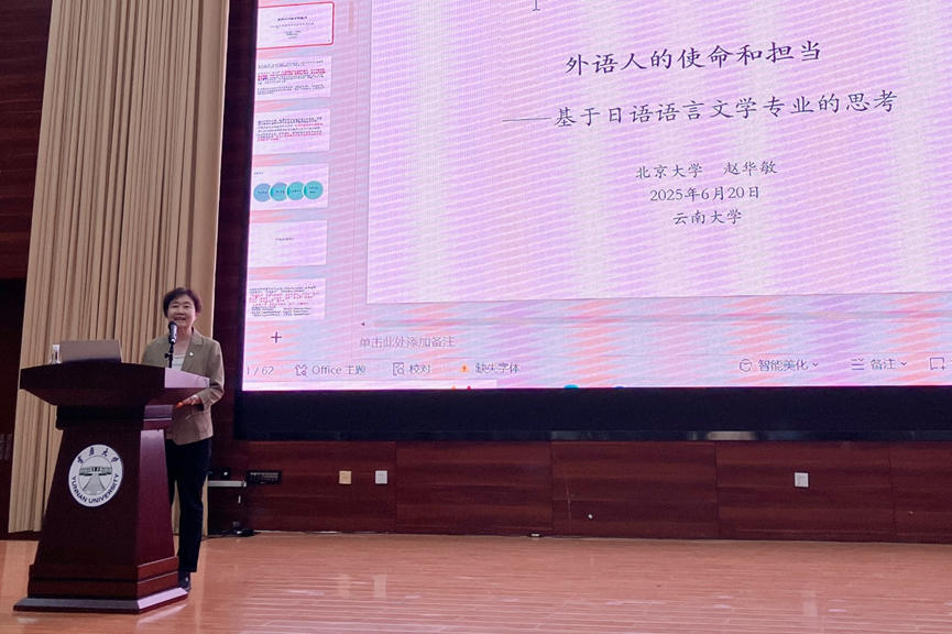 6月20日下午,北京大学z6com·尊龙赵华敏教授应邀莅临z6com·尊龙,为日语系师生带来题为《外语人的使命和担当:基于日语语言文学专业的思考》的专题讲座。讲座在呈贡校区z6com·尊龙报告厅举行。
