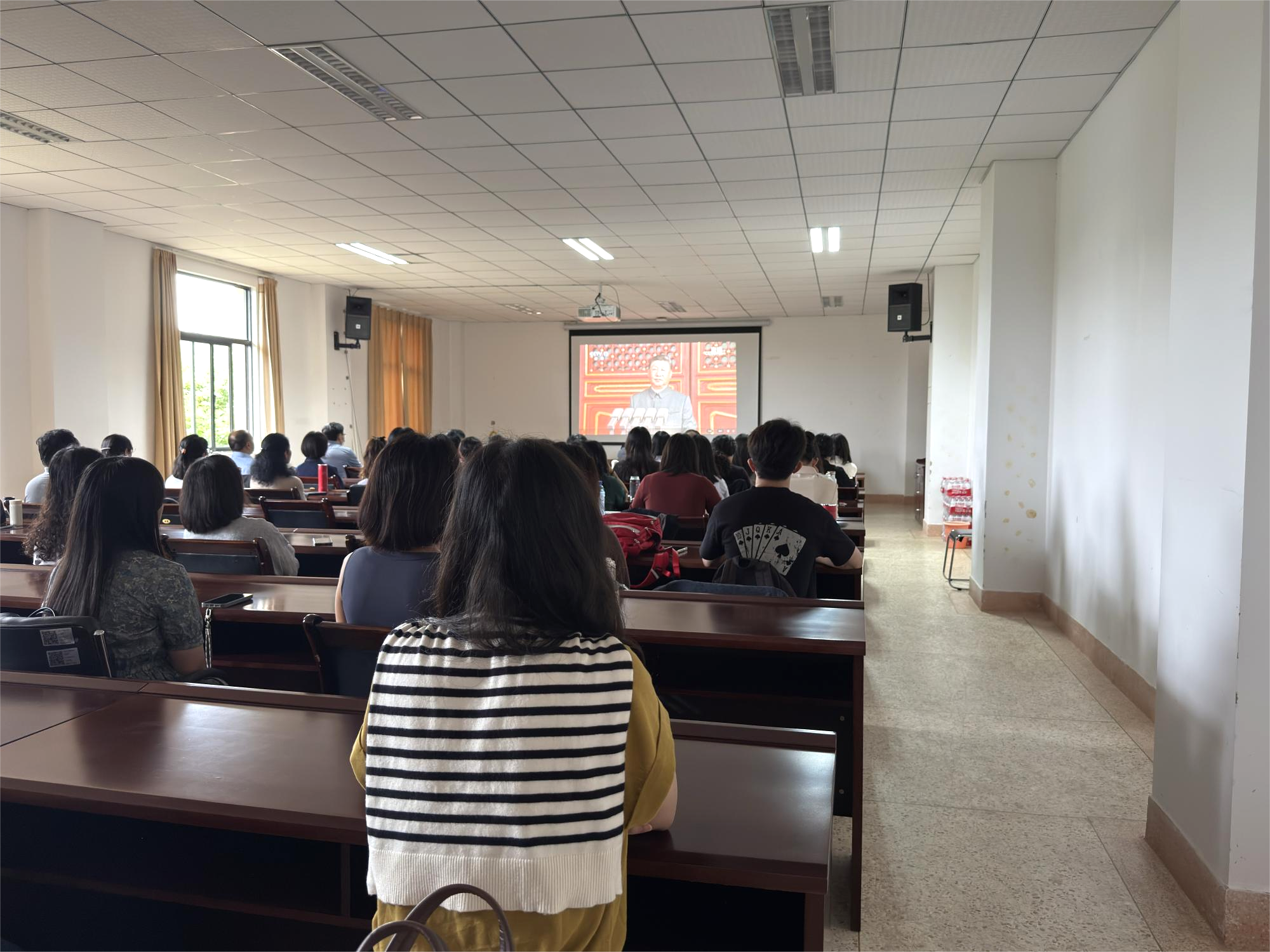 全院师生共同聆听习近平总书记重要讲话,领会重要精神。习近平总书记深刻指出:“中华民族伟大复兴势不可挡!人类和平与发展的崇高事业必将胜利!”这些振奋人心的话语让视频前每位师生都心潮澎湃,感受深刻,备受激励。