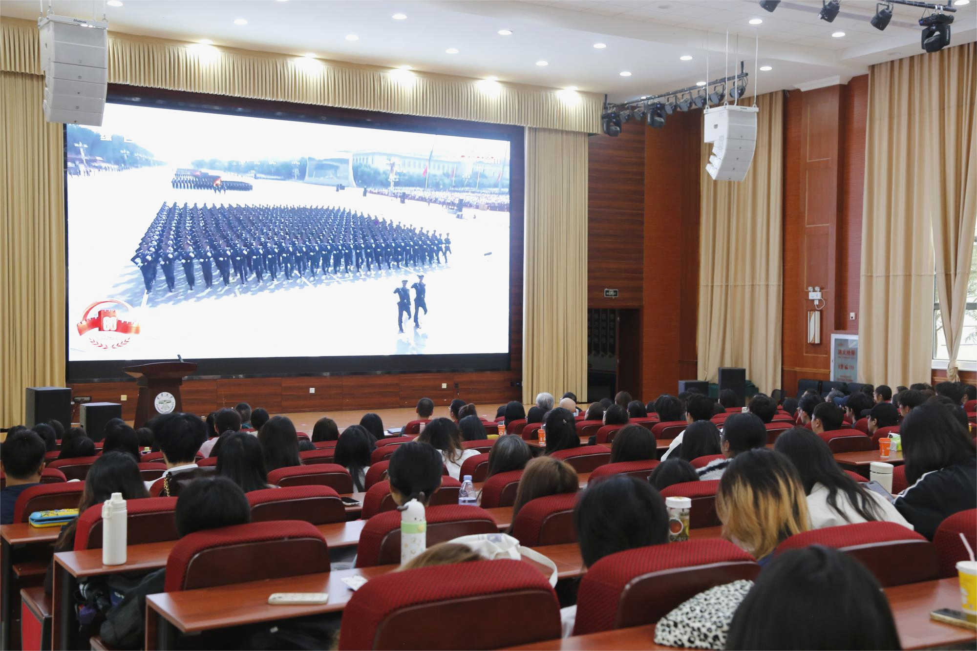 当徒步方队迈着铿锵有力的步伐走过天安门广场时,整齐的队列如刀切般精准,师生们激动地拍着手。随后,坦克、飞机、导弹等先进武器装备依次亮相,屏幕上每出现一种新装备,每位师生都感到由衷的自豪与惊喜。