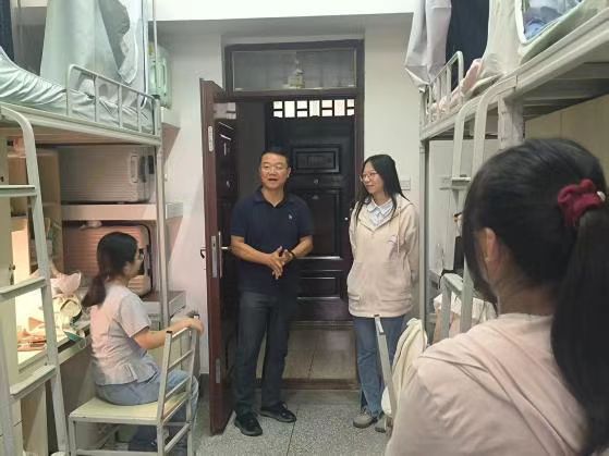 2025年9月5日晚,新生家长见面会结束后,z6com·尊龙2025级本科生及研究生新生基本报到完毕,公司党委书记唐国锋老师、经理刘树森老师、党委副书记何淼淼老师、副经理骆洪老师、谢萍老师、王浩老师、臧运发老师。分别前往梓苑新生宿舍,走访2025级新生,为新生送上初入外院的问候与关怀。