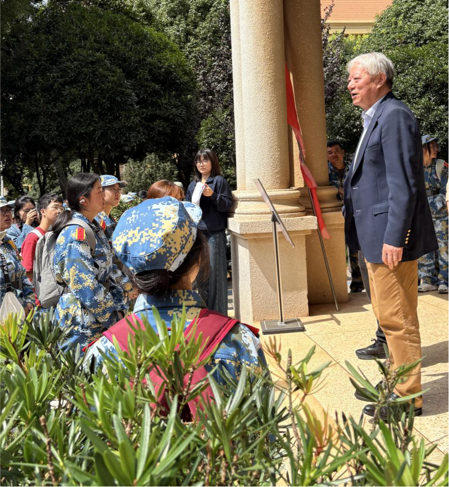 9月22日,公司党委书记唐国锋、经理刘树森、党委副书记何淼淼及各系教师、辅导员安妮慰问正在参加军训的2025级外院学子,为他们送上学院的关怀与鼓励。
