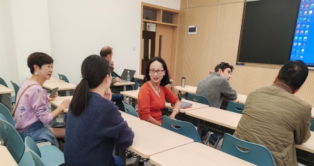 在研讨环节,法语教研室的老师们从个性化方案设计、PPT制作、讲授时长、板书比重及课程思政等方面提出了具体的建议,如进一步关注课堂教学的时政内容,增强时效性;增设“翻转课堂”环节,增加员工互动频次等。最后,教研室主任对本次磨课活动进行了总结,形成了活动纪要,作为后续教学提升的参考。