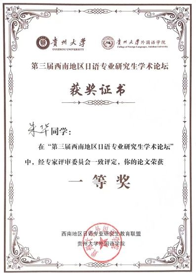 一等奖:日语翻译硕士(日语笔译)2024级 朱 华