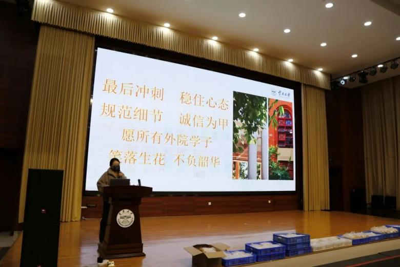 动员会最后,学院为同学们分发了慰问食品,送上温暖祝福。让我们一起祝愿各位大四考研学子,超常发挥,一战上岸!