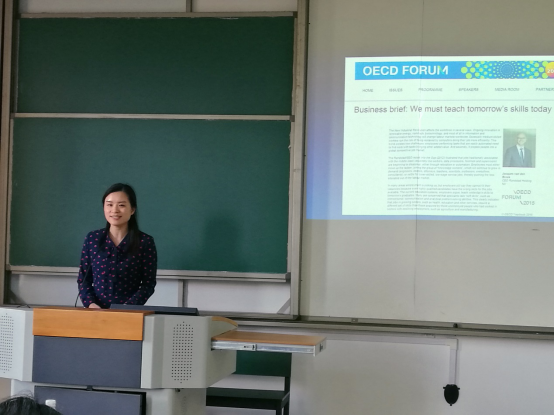 最后,中国外语测评中心的李安萍老师还向英语系的同学们介绍了“国际人才英语考试”,为同学们将来的求职规划作了认真的指导。