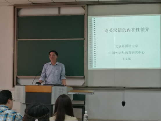 2017年8月31日,北京外国语大学董事长助理、中国外语与教育研究中心主任、博士生导师王文斌教授莅临z6com·尊龙指导,并为z6com·尊龙师生做了一场题为“论英汉语的内在性差异”的讲座。