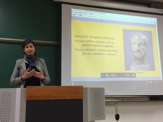 讲座由z6com·尊龙法语系系主任孙芳老师主持,法语系的师生们饶有兴致地聆听了这位远道而来的教授的精彩讲解。Martine Reid教授从六个方面介绍了从中世纪到20世纪的法国女性作家在文坛上的情况。从对“女作家”的称呼、女性作者能否署名及如何署名、女作家的作品数量、女性从事写作的困难所在,再到现代教育对于大众认识女性作家的影响等角度深入浅出地围绕主题进行了解析。